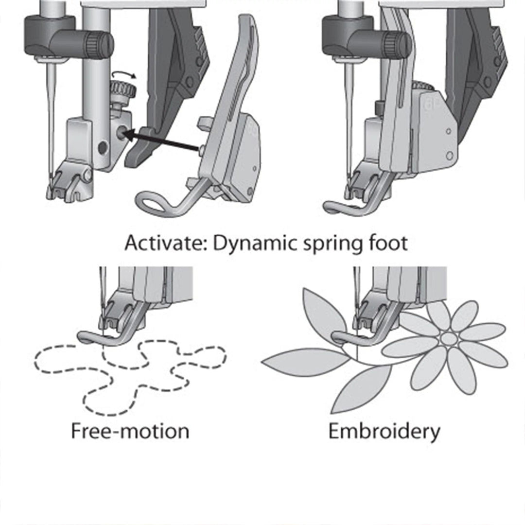Excellent For Embroidery And Precision Sewing Provides a clear view when precision is required: embroidery, free-motion sewing, quilting, stippling or following a design in the fabric. Spring action keeps fabric from lifting with the needle as the stitch is being formed, for consistently superior results.