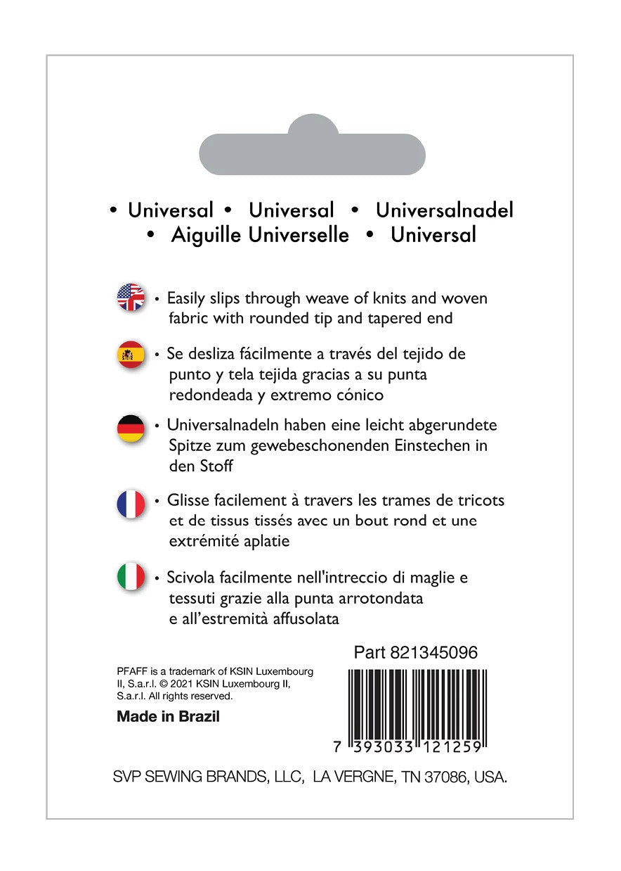 Needles Specially Designed For All-Purpose UseEasily slips through weave of light weight knits and woven fabric with rounded tip and tapered end. For optimum performance, change your needle every 6 - 8 hours of sewing and/or type of fabric.