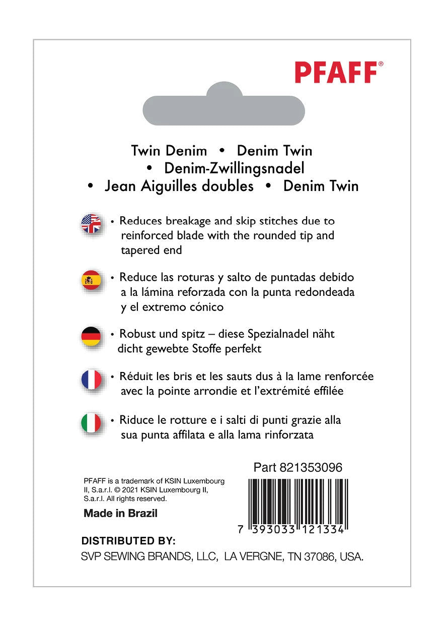 Creates two rows of stitches simultaneously and uses two spools of thread and one bobbin thread. Reinforced blade with the rounded tip and tapered end reduces breakage and skipped stitches. For optimum performance, change your needle every 6 - 8 hours of sewing and/or type of fabric.